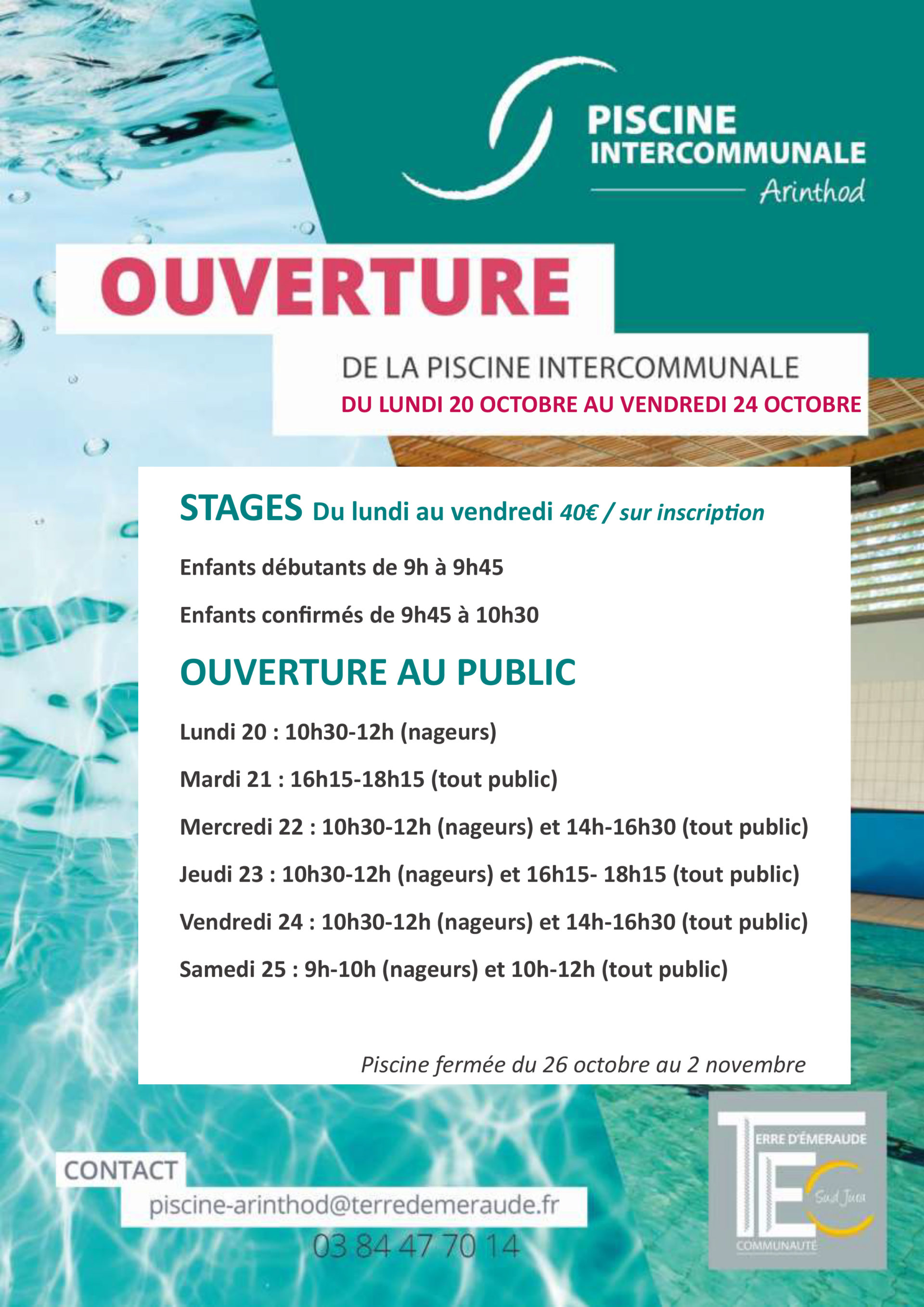 Le territoire dispose d’un bassin de natation situé à Arinthod qui permet aux habitants d’accéder à un équipement de proximité. Que ce soit pour vous dépenser ou vous détendre, profitez toute l’année et en toute sécurité du bassin !