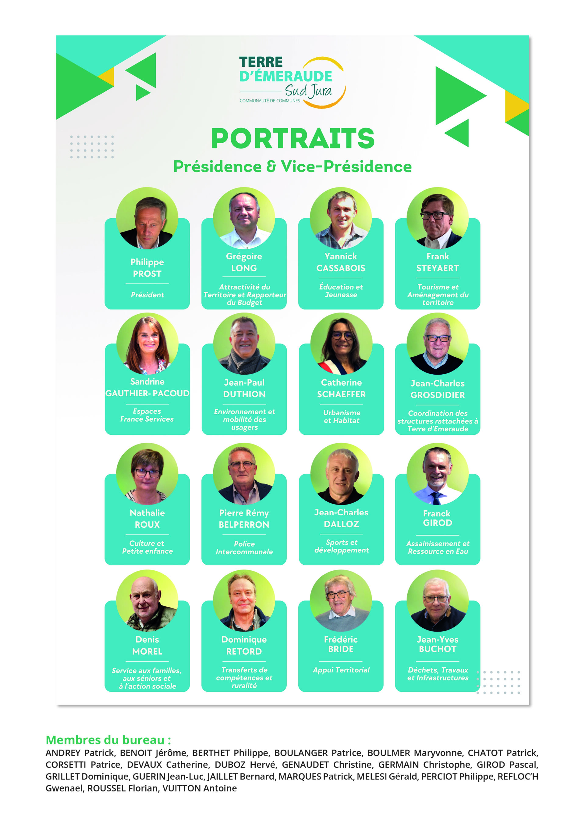 Cette nouvelle équipe s’inscrit à la fois dans une dynamique de continuité et de renouvellement, au service du développement et de l’attractivité de Terre d’Émeraude Communauté.
